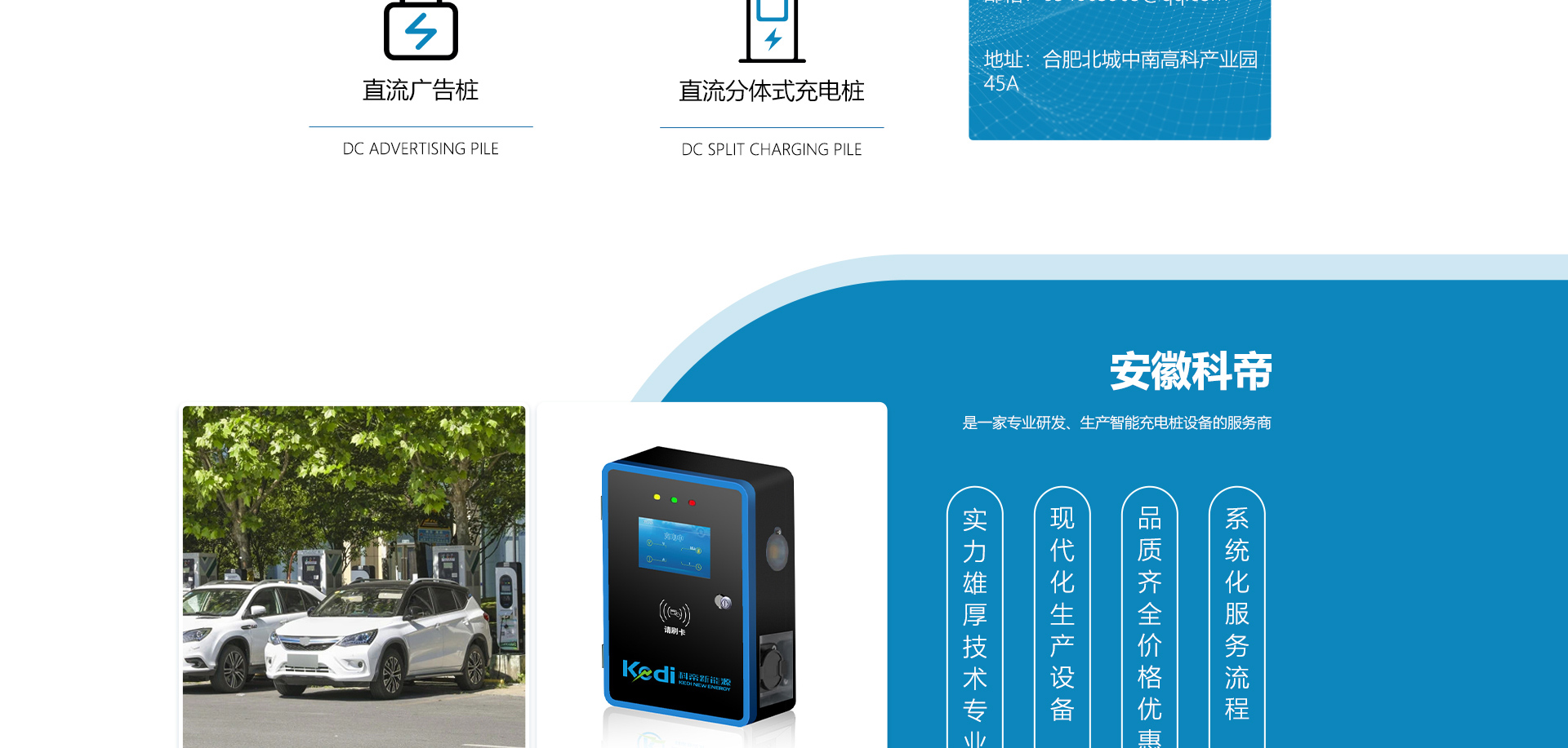 關于我們安徽科帝新能源科技有限公司坐落于安徽省會-合肥,是一家研發(fā)、生產智能充電樁設備,汽車充電站后臺監(jiān)控管理系統和生產高壓開關設備的企業(yè).由專門的研發(fā)團隊、管理團隊按照現代化企業(yè)制度規(guī)范設立的有限責任公司。致力于為能源智能、安全的應用和節(jié)能減排提供整體的技術與產品解決方案??频奂邪l(fā)、設計、生產、銷售以及服務于一體,在電動汽車充電方案,充電設施建設和城市配電方面擁有廣泛的技術研究及經驗積累,為客戶提供安全、智能的充電設備及充電運營站建設一體化解決方案。并堅持以人為本、質量為先、顧客至上、不斷創(chuàng)新”的企業(yè)理念,為能源行業(yè)的發(fā)展、節(jié)能減排做出重大的貢獻。公司擁有豐富的產品種類,目前科帝已研發(fā)生產了三十多種產品,充電設備有直流一體式充電樁、直流分體式充電樁、直流廣告樁、交流廣告樁、廣告一體樁、壁掛交直流樁;等多種充電設備;每一款產品都是精心打造,力求為客戶提供優(yōu)越的用戶體驗。展望未來科帝將通過持續(xù)的自...